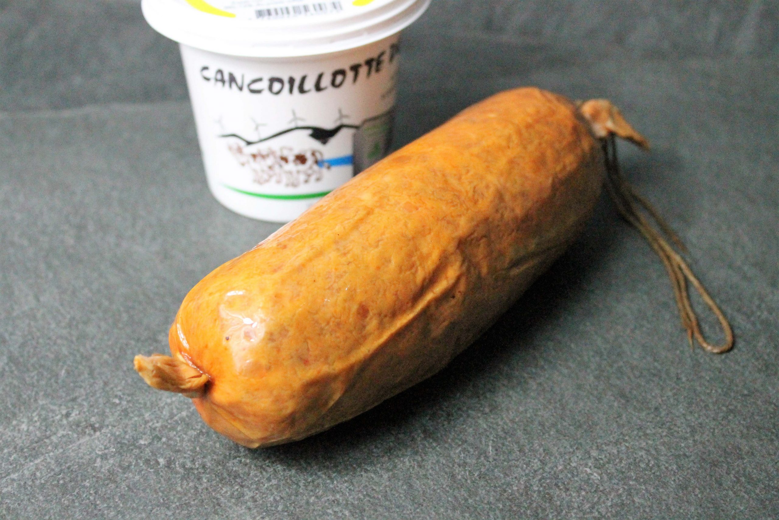 Saucisson au Vin d’Arbois de fabrication artisanale de la maison “Fumé du Jura”. Vendu par pièces de 250g