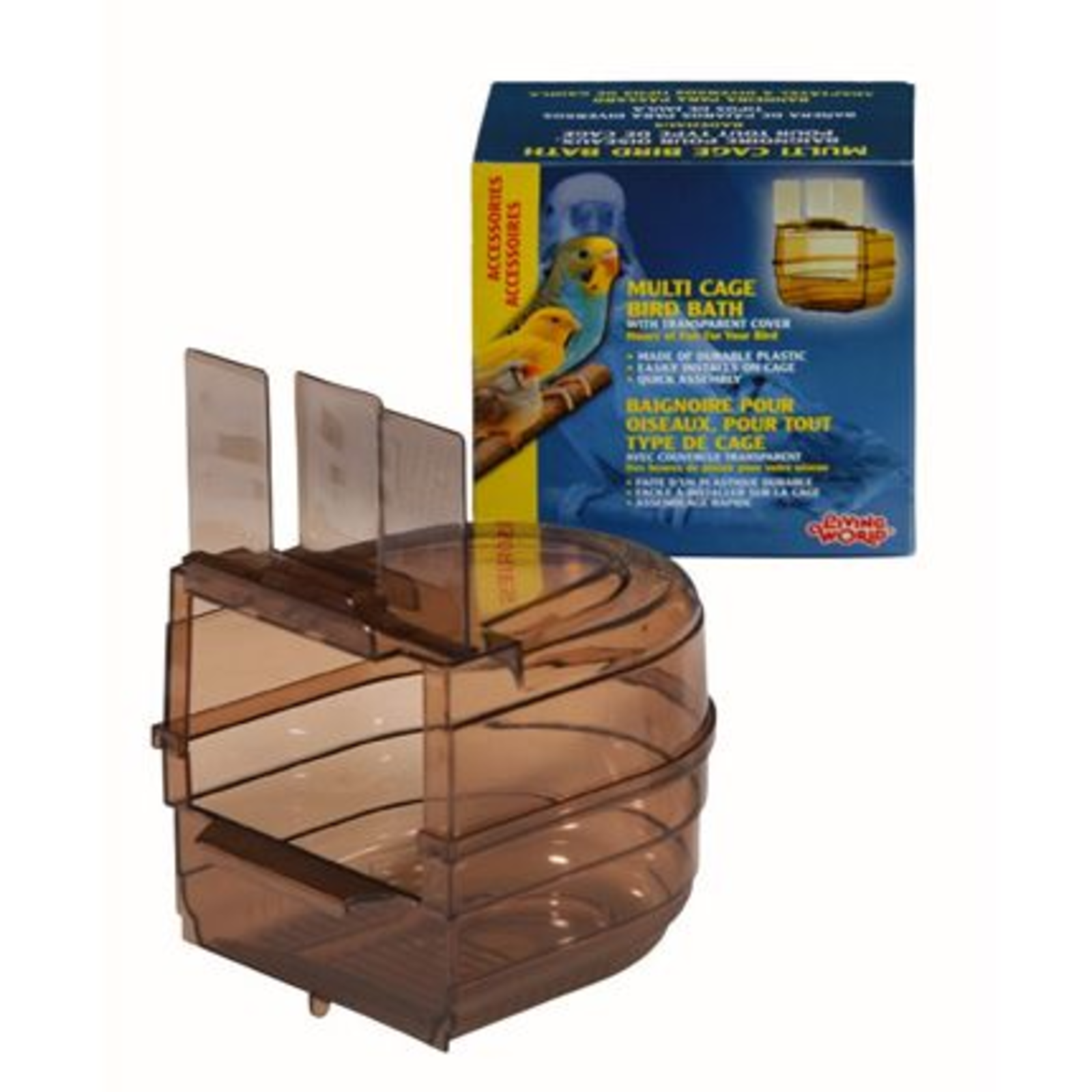 La marque Living World offre une variété de baignoires conçues pour assurer aux oiseaux des heures de bain sûr, amusant et apaisant. La baignoire pour l’extérieur de la cage peut être installée dans la porte de la plupart des cages standards.