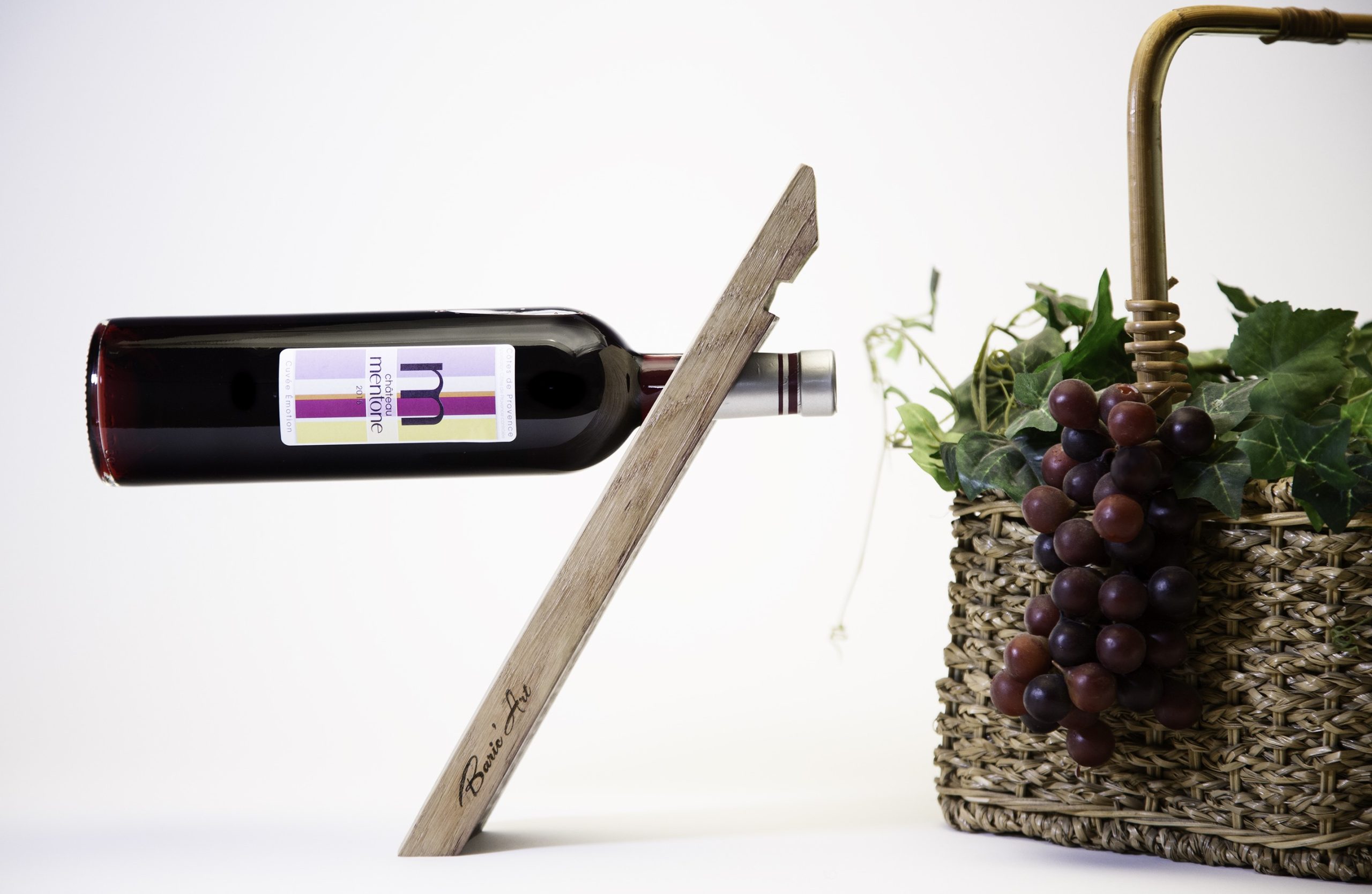 Porte bouteille équilibre : conçu à partir d’une douelle de barrique, cet accessoire allie élégance et beauté de l’équilibre. Il convient à la grande majorité des bouteilles. Le contrepoids de la bouteille permet un équilibre harmonieux.
